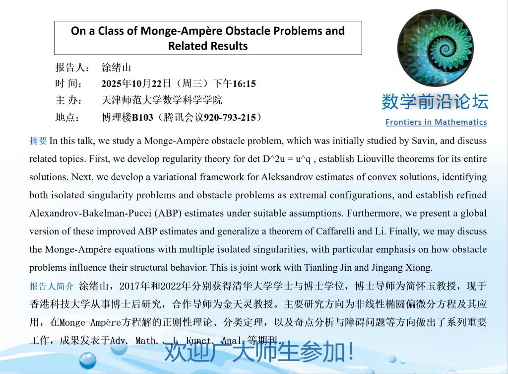【预告】学术报告(2025-41)10月22日-On a Class of Monge-Ampère Obstacle Problems and Related Results